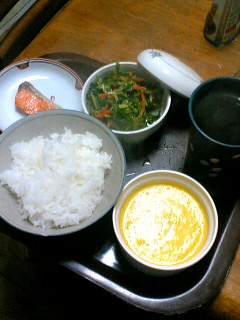 今日はお味噌汁のかわりに、メイトウのパンプキンポタージュスープ。